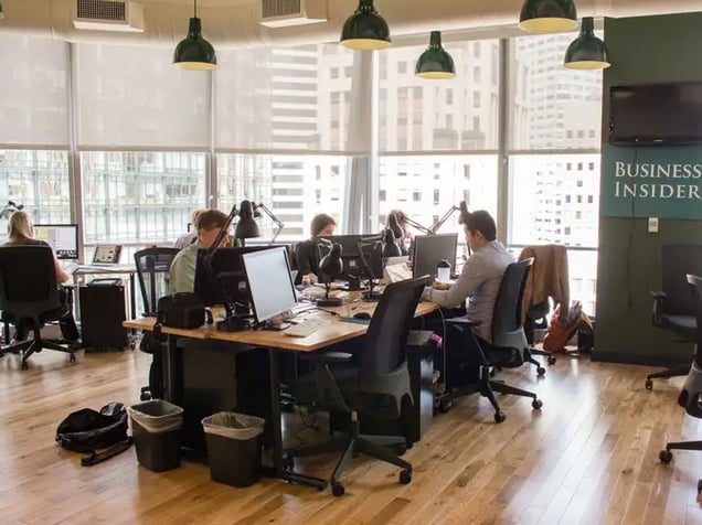 And it’s not just for individual, wandering professionals. Large companies like American Express, Business Insider, and Merck use WeWork too, renting out private office space for up to 100 employees. Rather than signing a 5- to 10-year lease, building out a semi-permanent office, and doing all the maintenance, these organizations can pay WeWork a premium and give their employees the same feel of a fully-stocked, traditional office environment.