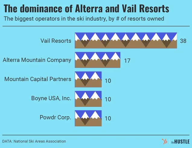- Although demand has soared to record heights, there are fewer ski resorts than there were 40 years ago and almost no opportunities to build new ones. That has led to overcrowding at resorts operated by Vail and Alterra — but has boosted independent ski areas, which have also broken records for skiers and revenues.