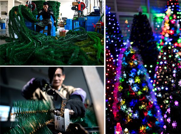 Scenes from an artificial Christmas tree factory in Yiwu, China, in 2016 (Photo: JOHANNES EISELE/AFP via Getty Images)