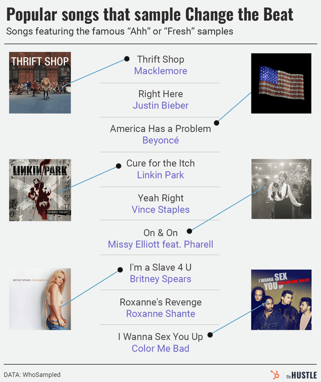 The Hustle reached out to several artists and representatives for artists who appear to have used “Ahh” and “Fresh” from the 80s onward, including Beyoncé, to see if they cleared the sample. We didn’t hear back. But many of those artists don’t credit “Change the Beat” in their album liner notes, where artists often list samples.