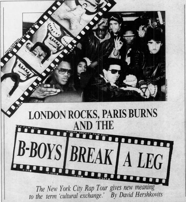 The New York Daily News followed The New York City Rap Tour in Europe, describing its impact as melting down borders “in the heat of the soul-sonic blast.” (New York Daily News via Newspapers.com)